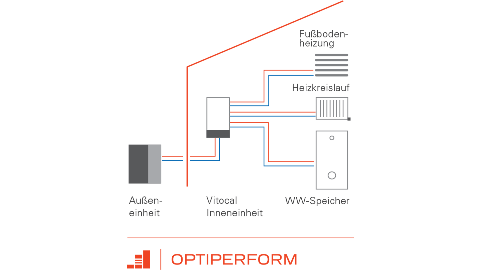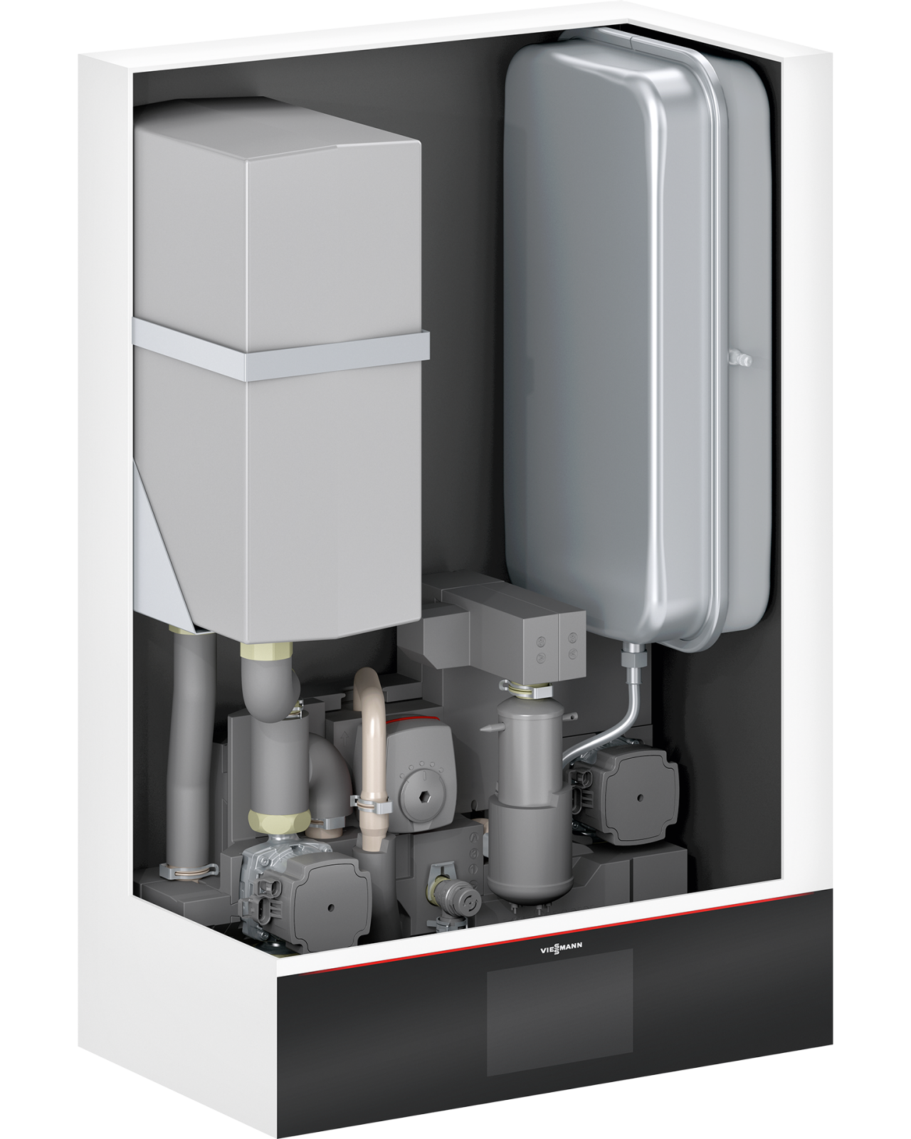 Viessmann’s advanced heat pumps work with a patented hydraulic system. Thanks to the Hydro AutoControl® system, the heat pump operates reliably and with maximum efficiency over its entire service life. The unique design not only ensures that your contractor can install a heat pump with OptiPerform much faster and therefore more cost-effective. It also takes up much less space, as it is 60 percent smaller than similar systems.